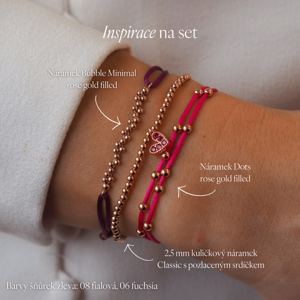 Náramek Bubble Minimal je jemným detailem pro každodenní nošení. Působí lehce a přirozeně a snadno se kombinuje s dalšími šperky. Varianta rose gold filled dodává šperku jemně ženský tón.