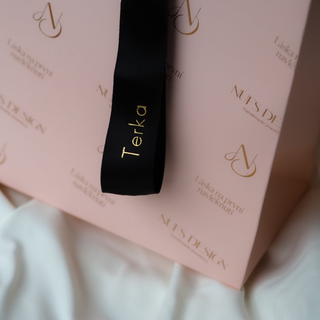 ✨ Ražba na stuhu dodá dárkovému balení královský nádech – decentní nápis na saténové mašli, který sám o sobě působí jako ozdoba.