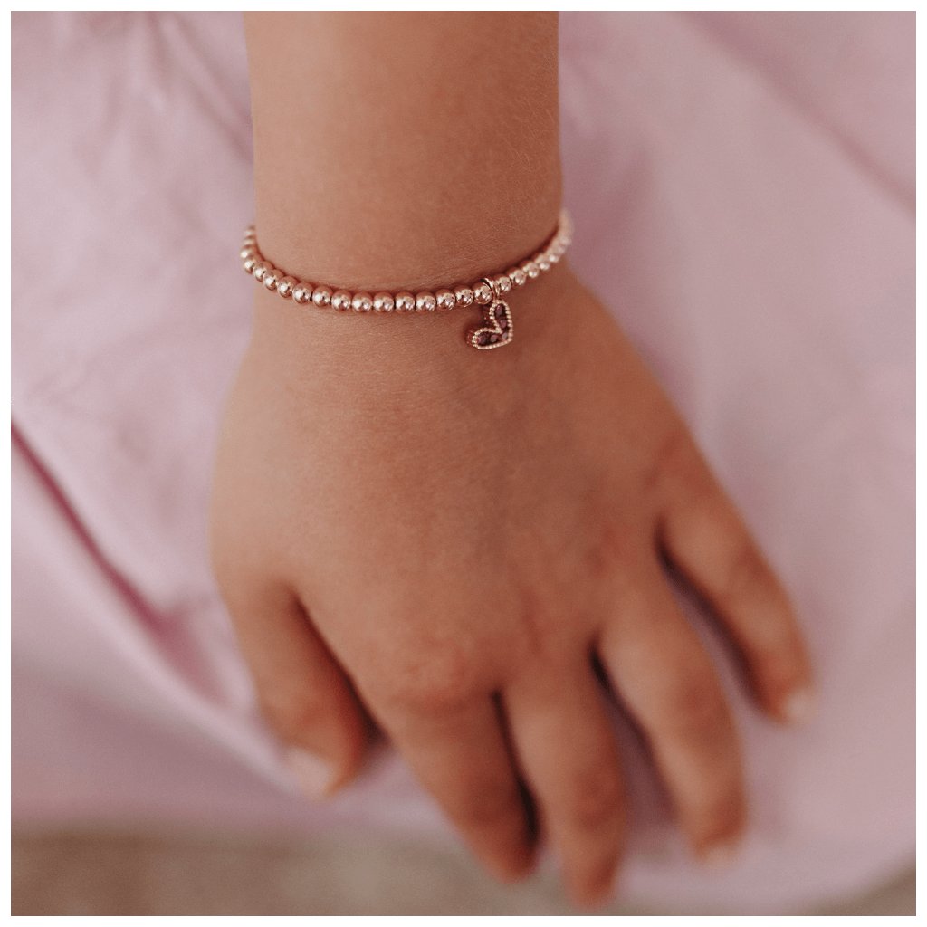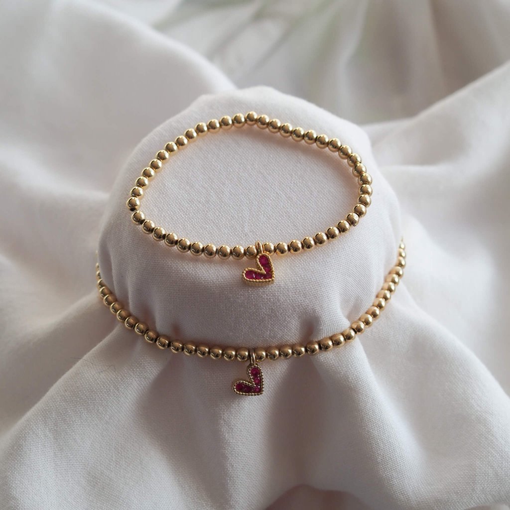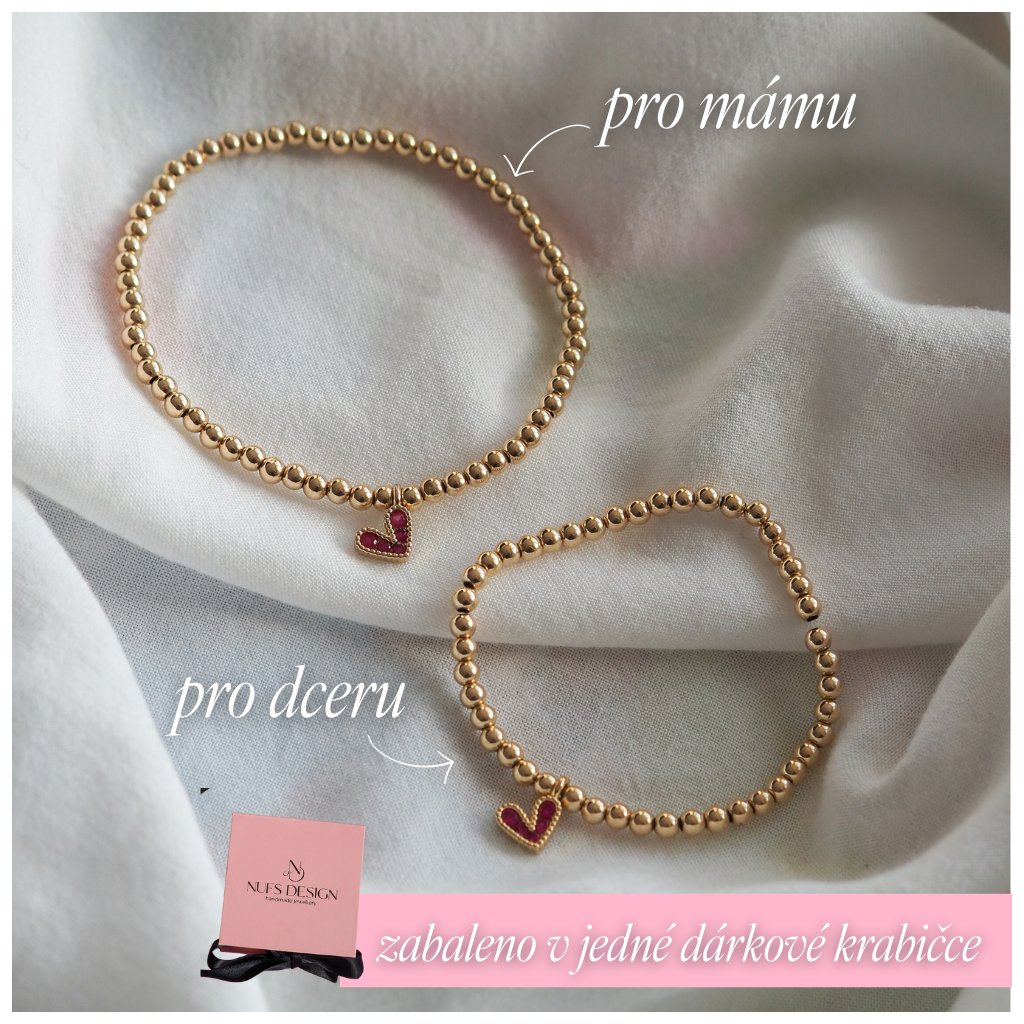 Jemný kuličkový náramek z gold filled materiálu s pozlaceným srdíčkem jako symbol lásky mezi maminkou a dcerou. Ideální pro matchy-matchy ladění a jako talisman pro maminku a dceru.