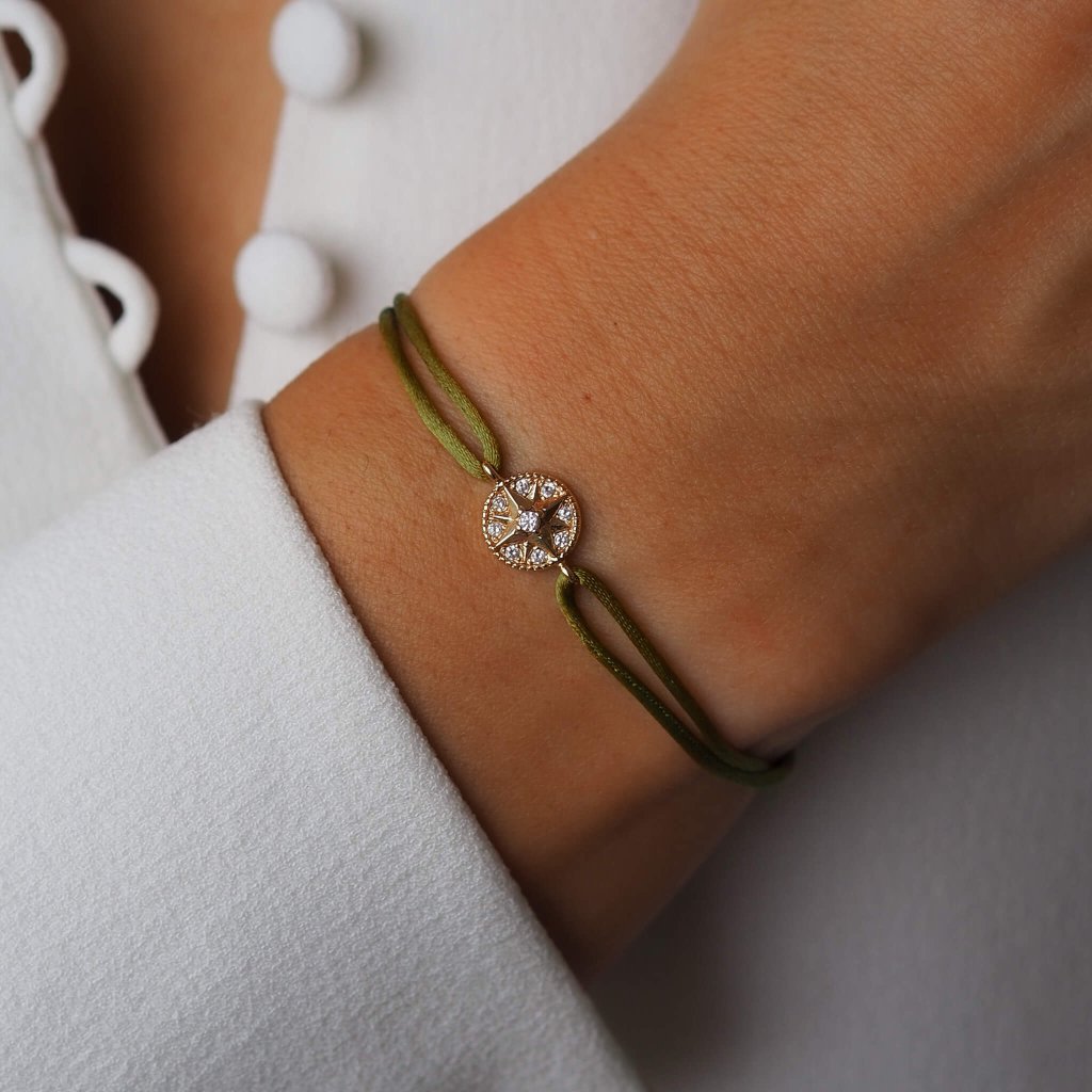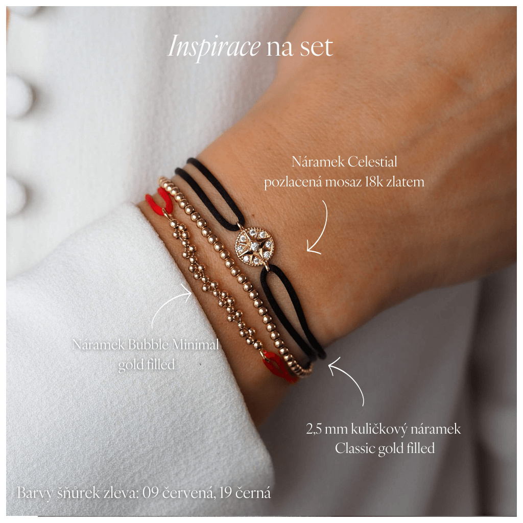 Náramek Celestial Star na saténové šňůrce pozlacený