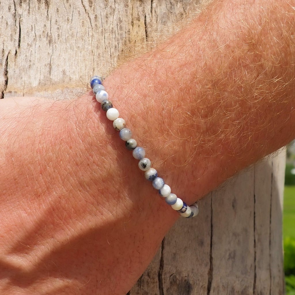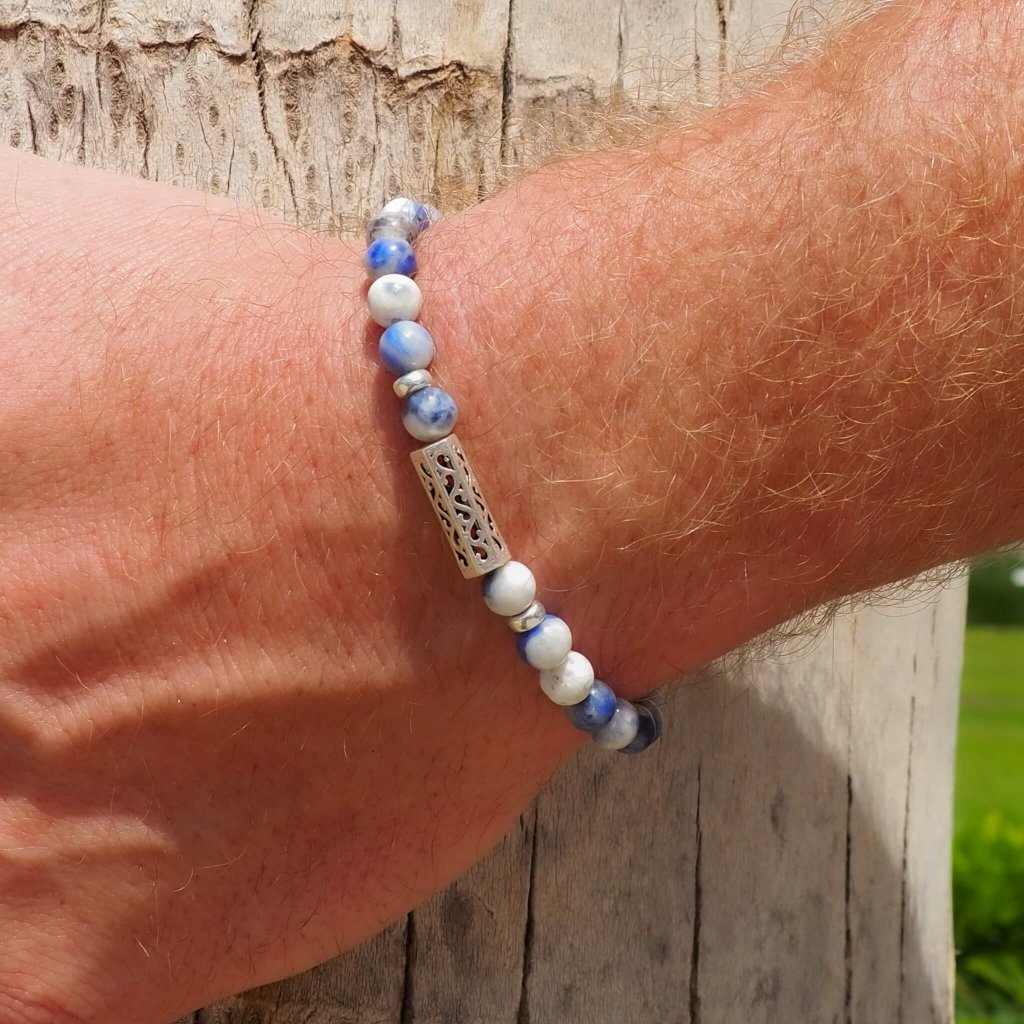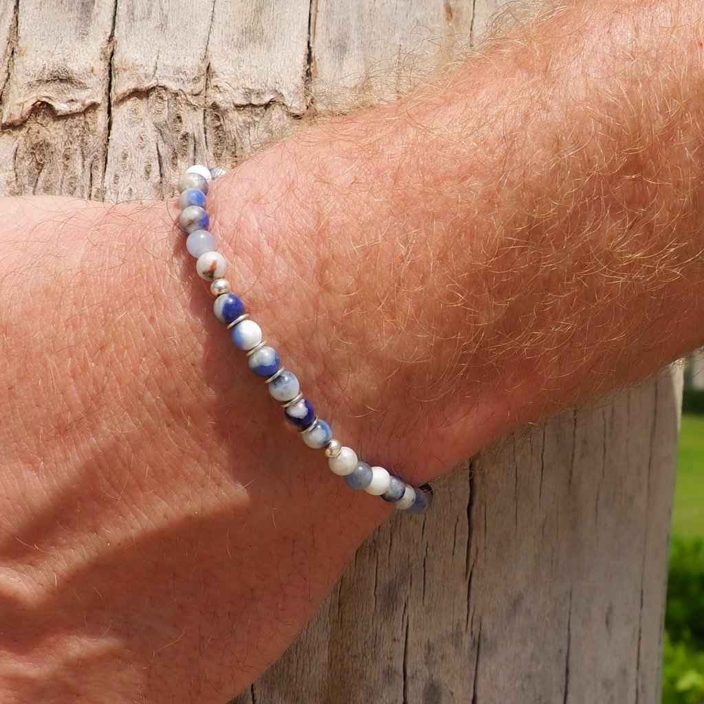 - dva elegantní náramky zdobené sodalitovými minerály o velikosti 6 a 4 mm, doplněné o komponenty ze sterlingového stříbra
