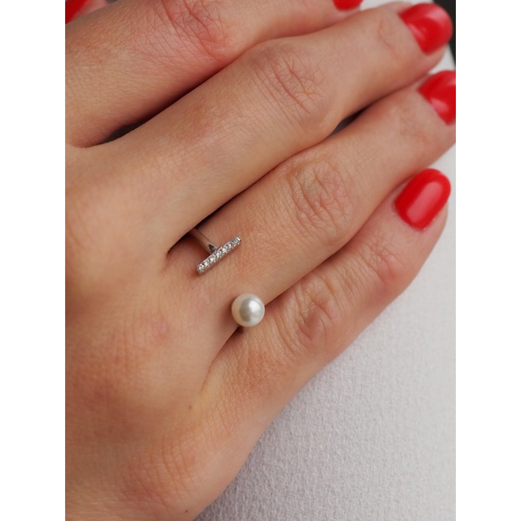 Elegantní otevřený prstýnek zdobený umělou perlou a zirkonií, v univerzální velikosti, ze sterlingového stříbra představuje dokonalou harmonii mezi klasickou krásou a moderním designem. Jeho univerzální velikost zajistí pohodlné nošení pro každou ženu a jeho jedinečný design z něj dělá výjimečný doplněk, který upoutá pozornost.