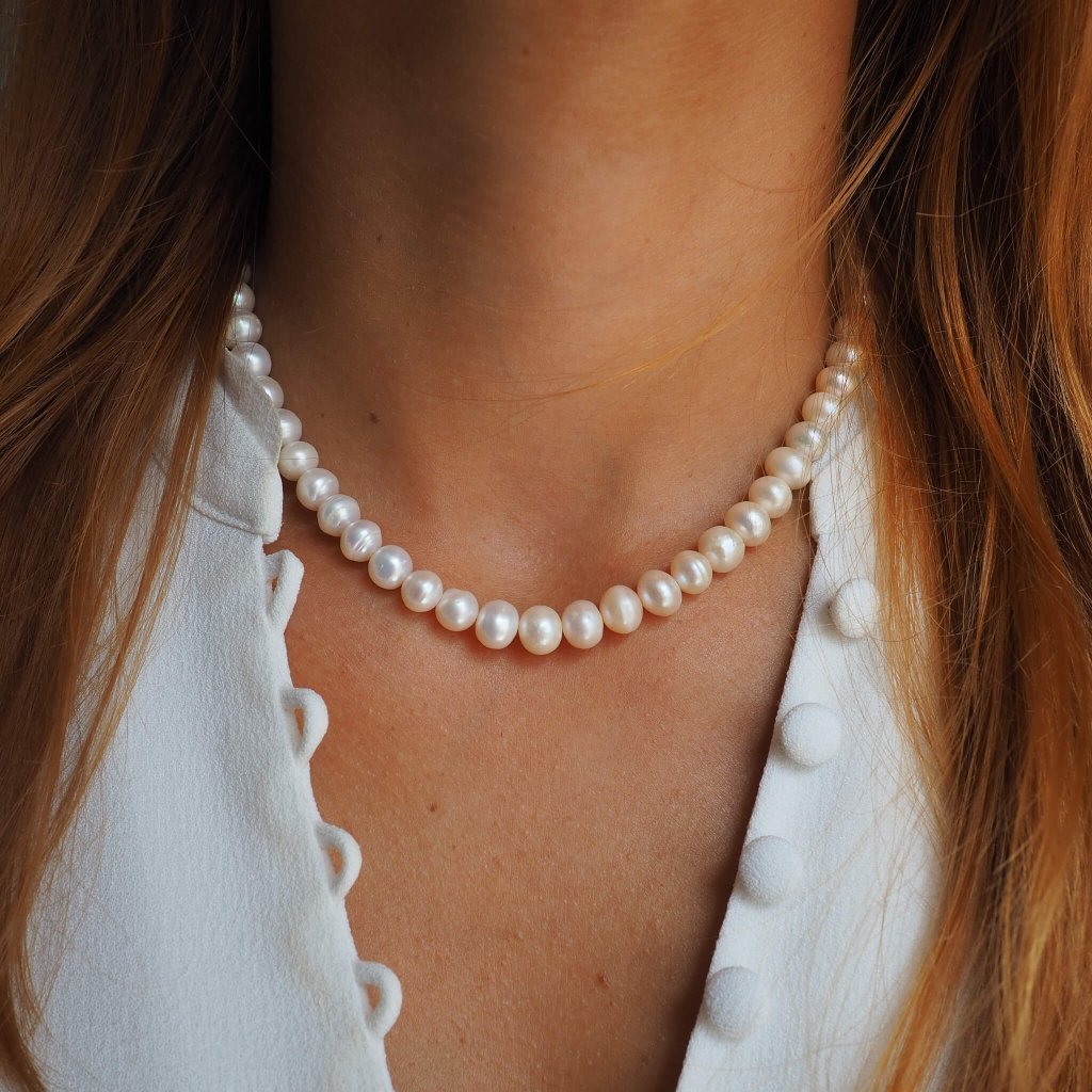 Jemný a elegantní, a takový, který nesmí chybět ve vaší šperkovnici. To je perlový náhrdelník. Sladkovodní perly a precizní ruční výroba z něj dělají kousek, který si zaslouží místo ve vaší šperkovnici.