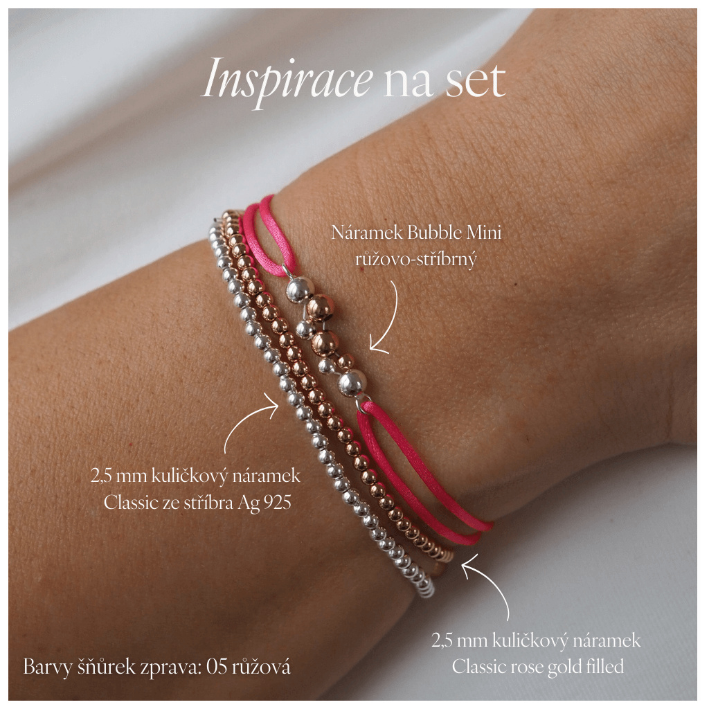 Elegantní náramek vytvořen z 2,5 mm kuliček ze sterlingového stříbra, navlečených na tenké pružné gumičce, je synonymem minimalismu a jemnosti. Skvěle se hodí pro vrstvení a kombinování s dalšími náramky. Ideální jako dárek na narozeniny, výročí, speciální příležitosti nebo jako upomínkový předmět pro družičky či nevěstu.