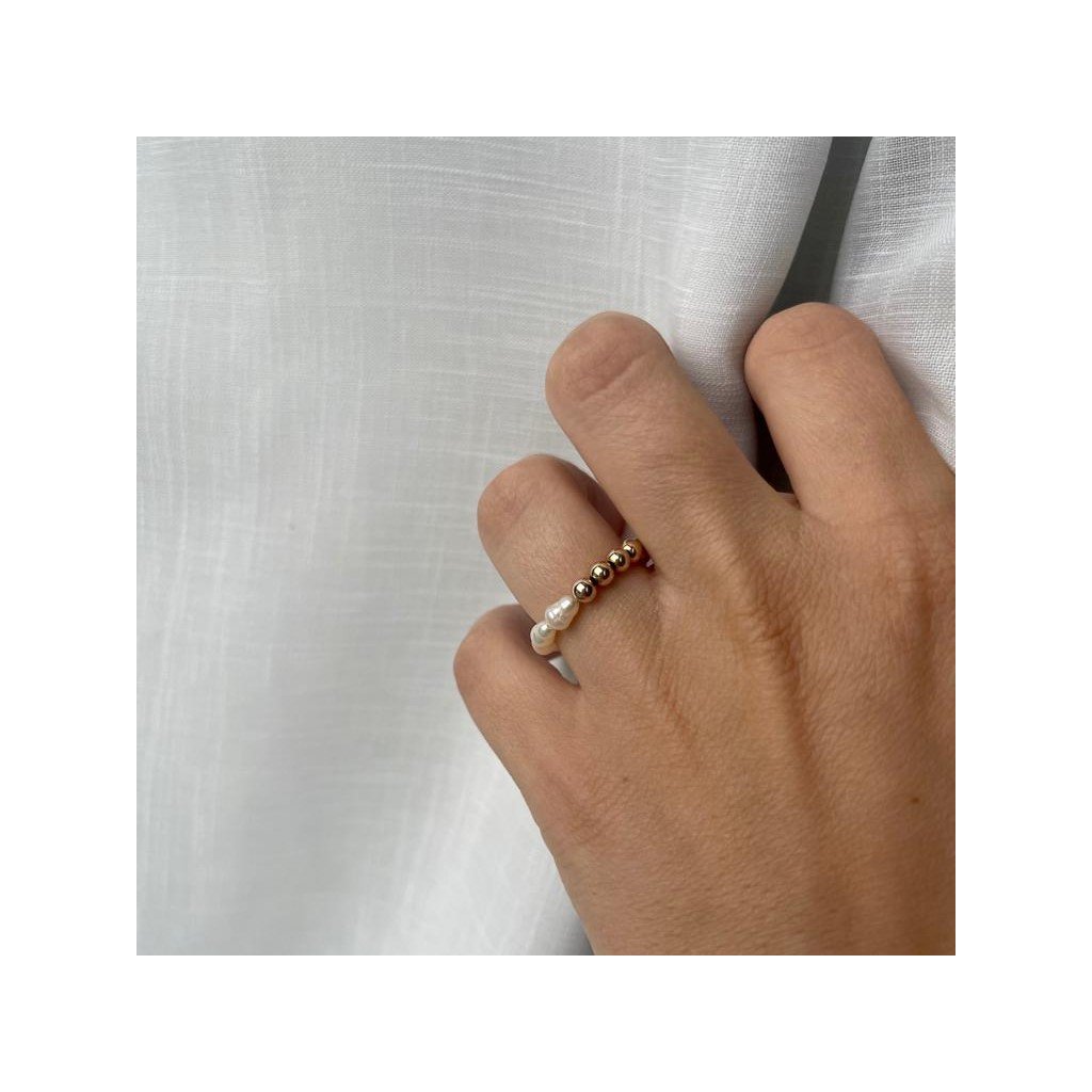 Ručně vyrobený prstýnek z gold filled materiálu v kombinaci se sladkovodními perlami je kousek, který vám ve šperkovnici nesmí chybět.
