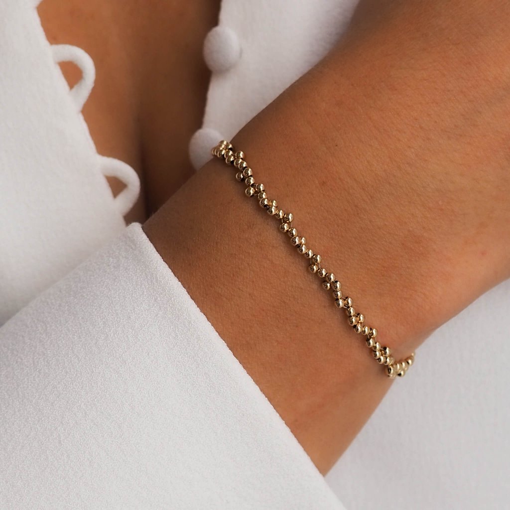 Milujete minimalismus, něžné a jemné šperky a jste fanynkou Bubble kolekce? V tom případě je tenhle kousek navržen pro vás! Drobné bublinky z gold filled materiálu jsou precizně navlečeny po celé délce náramku, a tvoří tak elegantní šperk, který vytváří na zápěstí dechberoucí luxusní efekt.