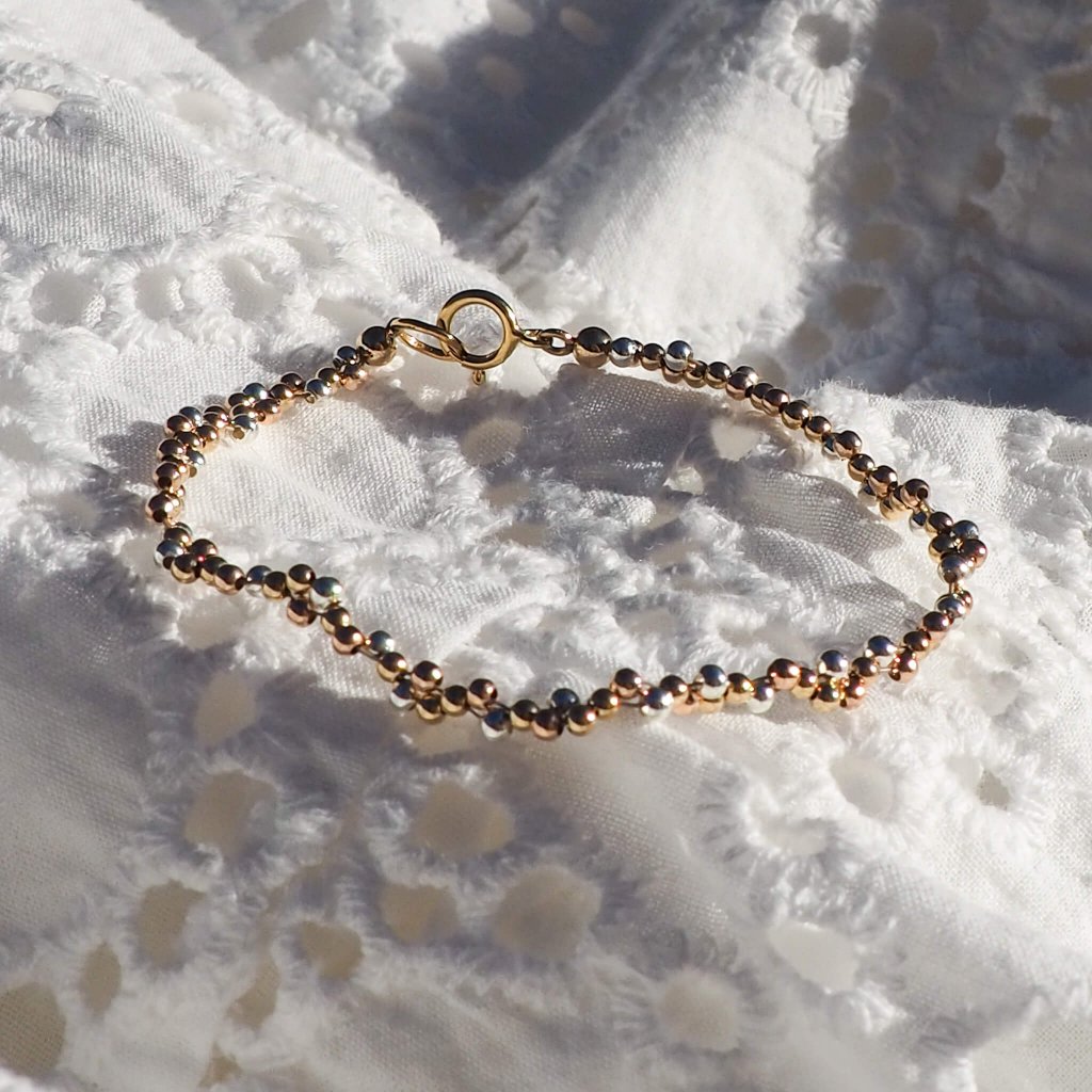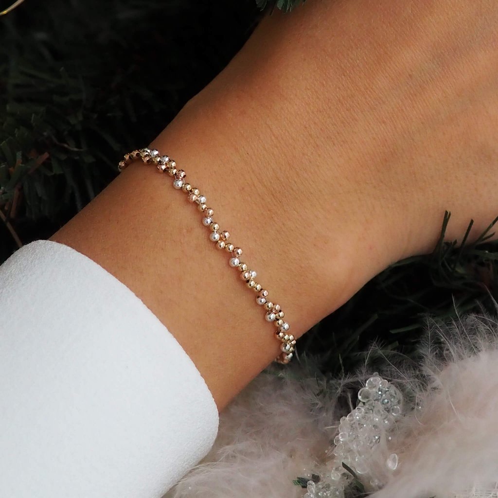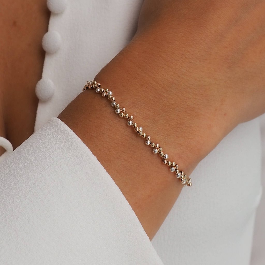 Milujete minimalismus, zlaté, stříbrné i rose gold odstíny a jste fanynkou Bubble kolekce? V tom případě je tenhle kousek navržen pro vás! Drobné bublinky tří barev jsou precizně navlečeny po celé délce náramku, a tvoří tak elegantní kousek, který vytváří na zápěstí dechberoucí luxusní efekt.
