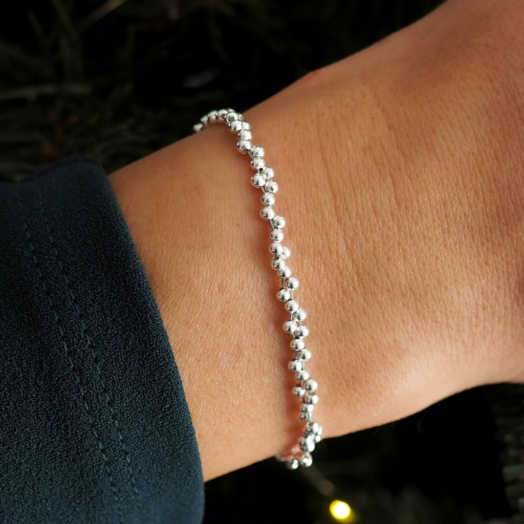 Milujete minimalismus a jste fanynkou Bubble kolekce? V tom případě je tenhle kousek navržen pro vás! Drobné bublinky ze sterlingového stříbra jsou precizně navlečeny po celé délce náramku, a tvoří tak elegantní šperk, který vytváří na zápěstí dechberoucí luxusní efekt.
