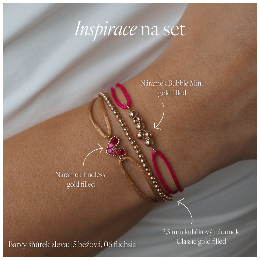 Projevte svou nekonečnou lásku s náramkem Endless Love, který zdobí výrazné gold filled srdíčko se zirkony na saténové šňůrce s posuvnými uzlíky pro dokonalé přizpůsobení se každému zápěstí.