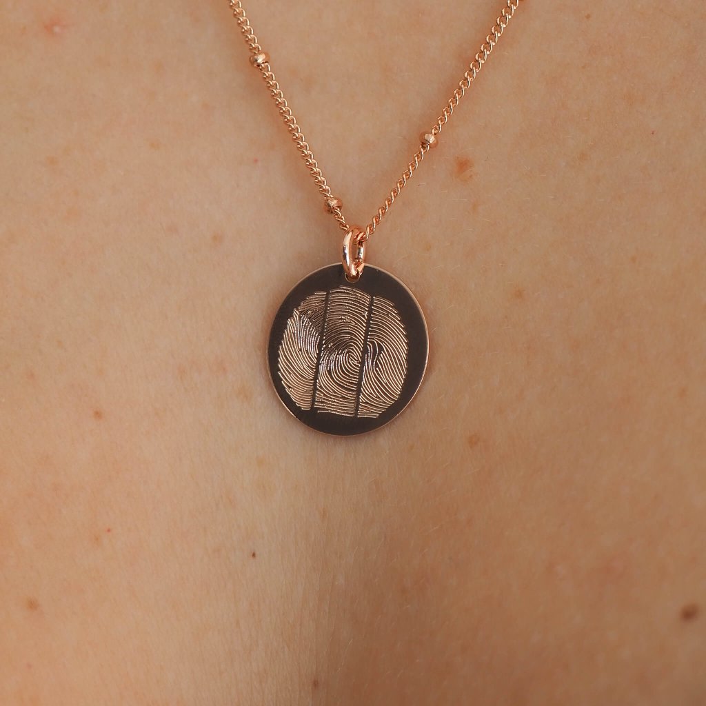 Vtiskněte ty nejkrásnější vzpomínky do jemného náhrdelníku s vlastním otiskem prstu. Tenhle rose gold přívěsek se stane oblíbeným kouskem všech novopečených maminek, babiček i tetiček – je elegantní, osobní a stejně jedinečný jako vzpomínky na vaše nejbližší.