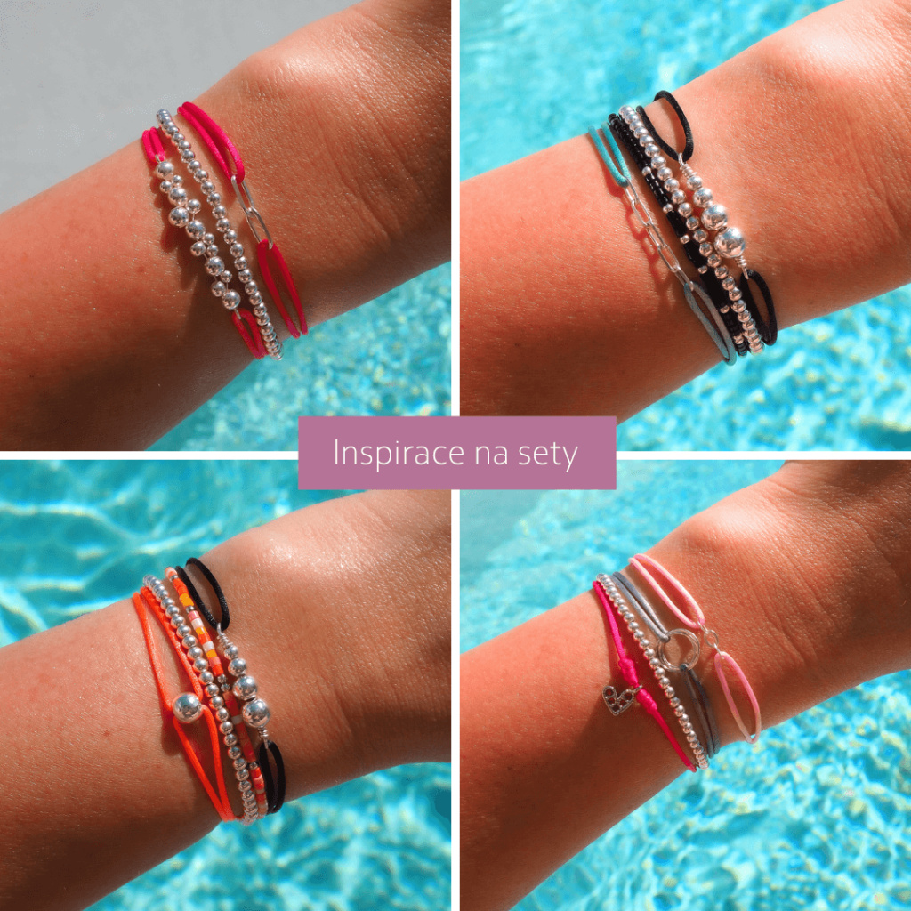 Náramek je navlečen na jemné saténové šňůrce o průměru 1 mm, vybírat můžete až z 28 barev.